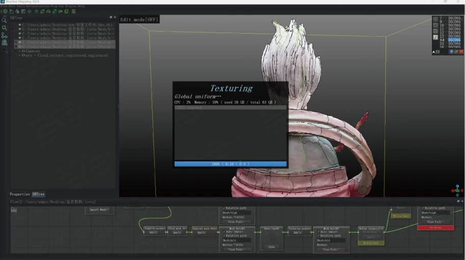Orientação relativa das fotos e geração de nuvem de pontos para consistência da textura.